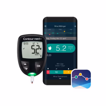 CONTOUR® NEXT apparatet har Bluetooth® overførsel, så resultater kan overføres automatisk til CONTOUR DIABETES App der kan bruges på stort set alle smartphones*. CONTOUR® NEXT apparatet tilbyder dig sammen med CONTOUR® DIABETES App en løsning, der hjælper dig til at se dine resultater i sammenhæng. Det giver dig mulighed for bedre regulering af din diabetes.