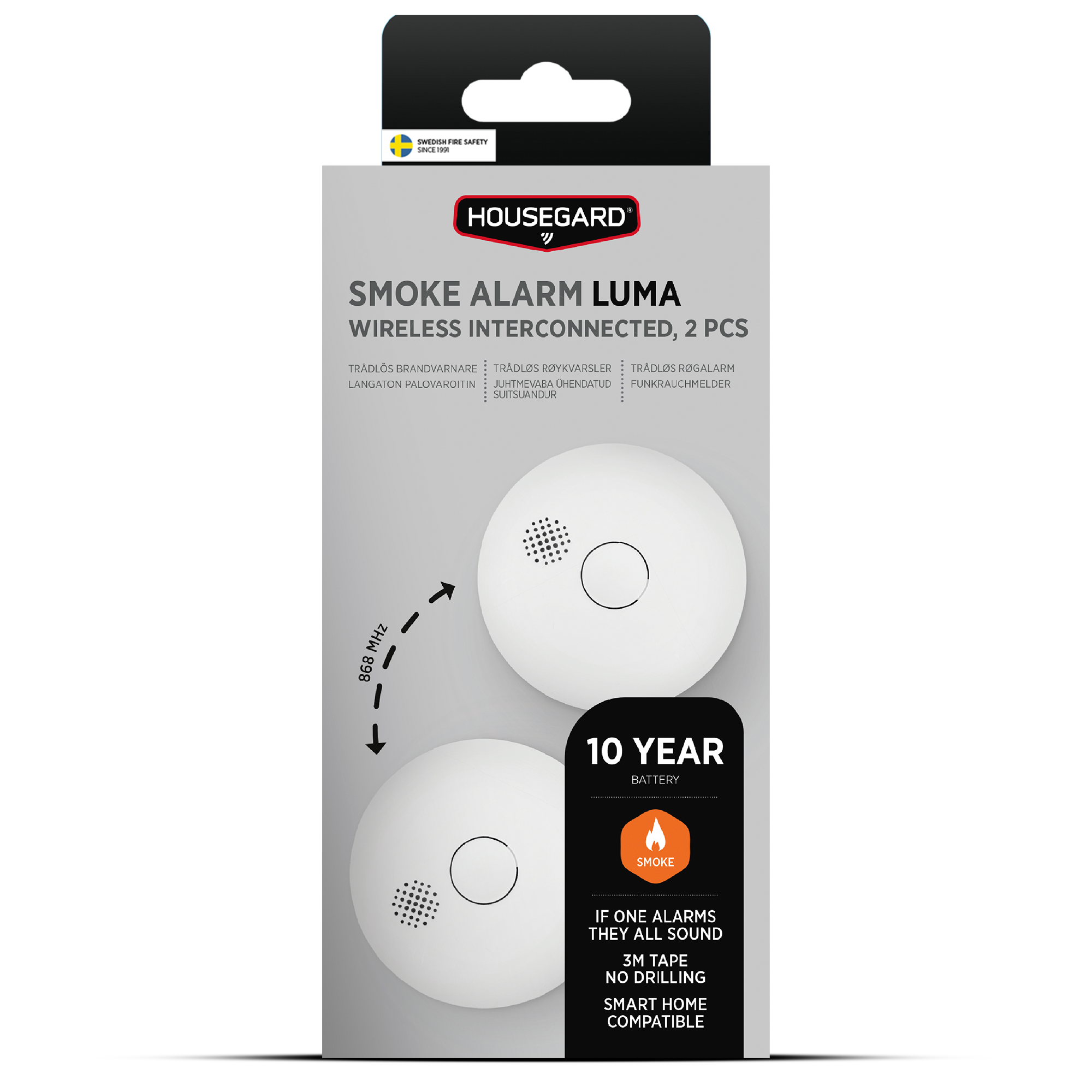 Housegard Luma trådløs, seriekoblet røgalarm, inkl. 10-års batteri, 2-pak