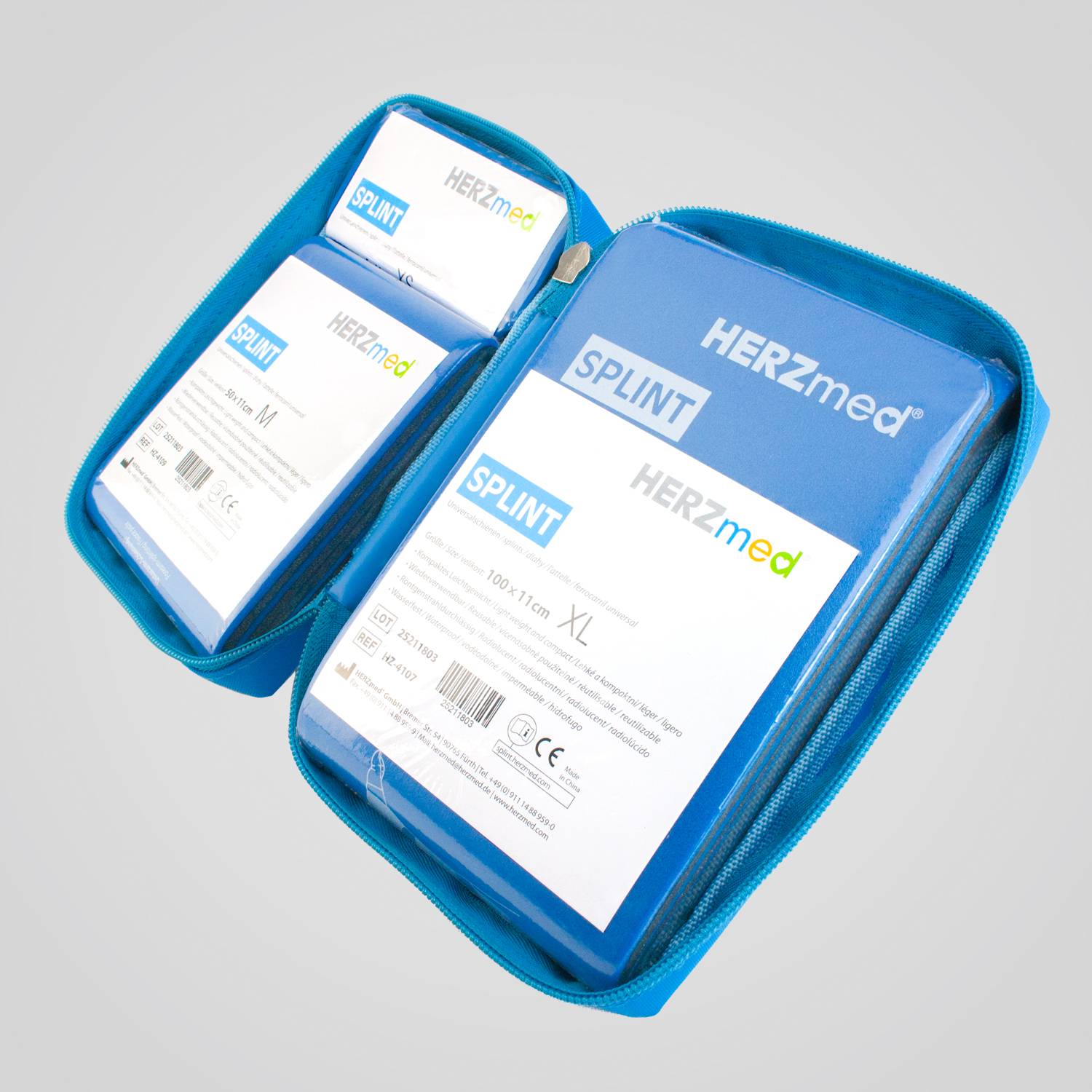 Komplet sæt i forskellige størrelser pakket i lille kompakt taske. Benyttes til hurtig, enkel og sikker immobilisering af knoglebrud. Produceret af let og formbar skumpolstret aluminium. Kan klippes med almindelig saks og passer til enhver størrelse.