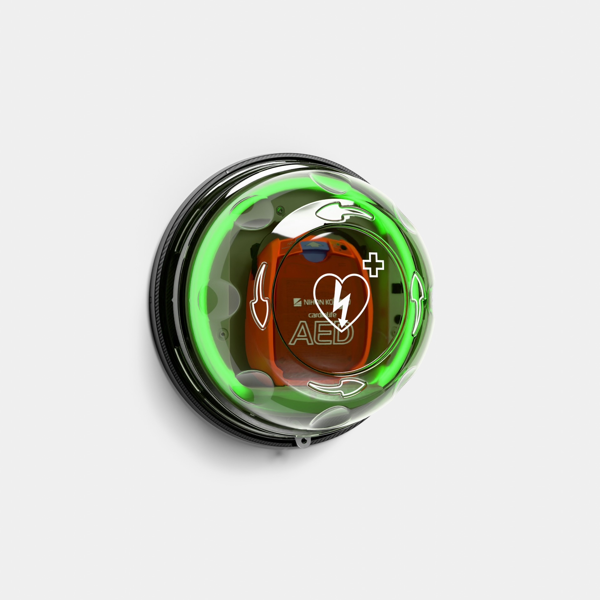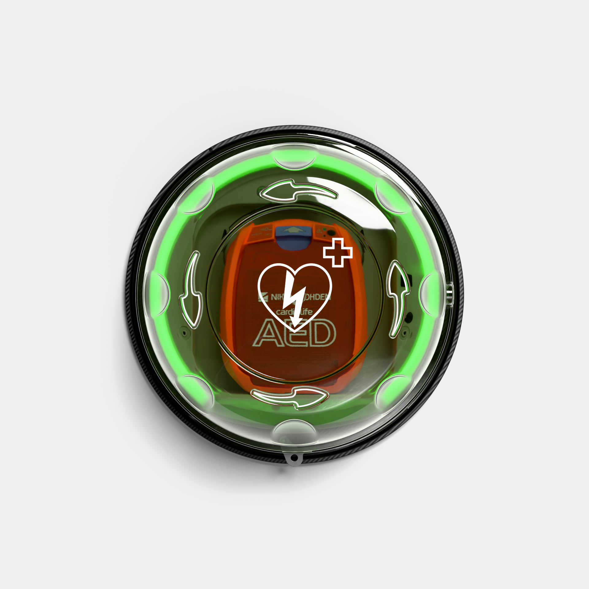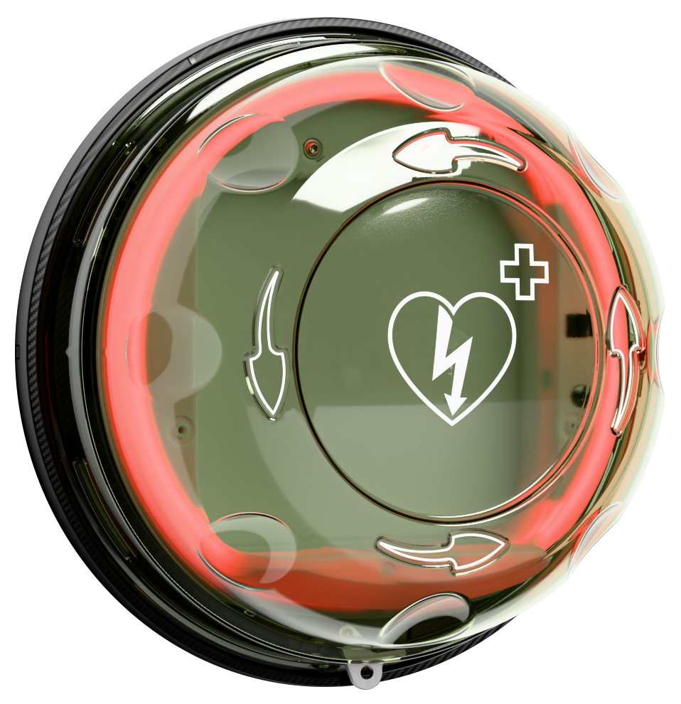 Rotaid 24/7 revolutionere branchen med dette komplette hjertestarter skab. Rotaid 24/7 overvåger hjertestarterens tilstand og alarmere via sms og email når skabet åbnes og hjertestarteren tages i brug. Skabet vil i høj grad reducere behovet for fysisk kontrol af din hjertestarter, da systemet overvåger driftstatus 24/7. Ved at opsætte dette skab er Jeres hjertestarter altid klar til brug.